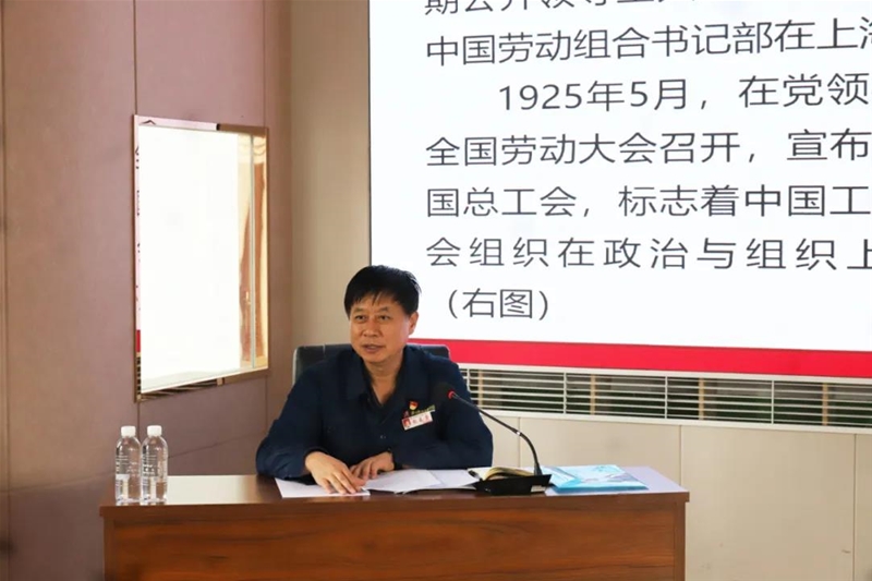 宣講中,趙春棠以《從黨領導中國工人運動的百年歷史中汲取奮進力量》為題,從中國共產黨領導工人運動的百年歷程、中國共產黨領導工人運動的理論探索、百年中國工人運動的啟示體會三方面進行了一場生動的宣講。并與參會人員進行了黨史知識互動問答,進一步引導廣大黨員干部傳承紅色基因,厚植為民情懷,切實為職工辦好事、辦實事、解難題。