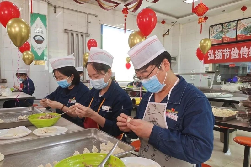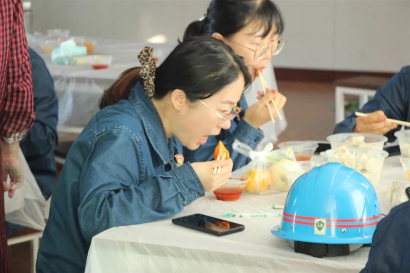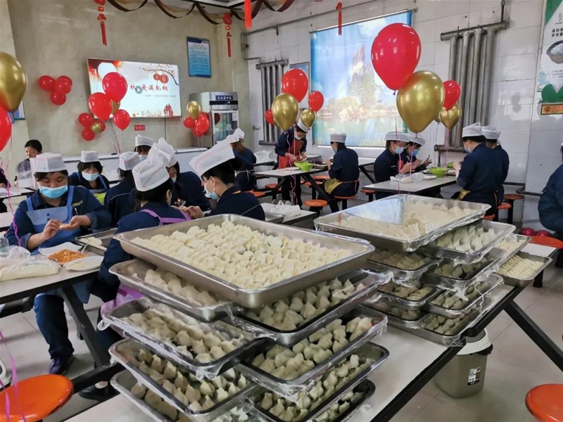 能源檢計量中心工會因地制宜,在水處理中心活動室組織各作業區女職工包餃子,洗菜配料、搟皮拌餡、調蘸料配碗碟等,讓職工盡情享用美味,還特意在餃子中準備了“驚喜”,增強了活動的趣味性。