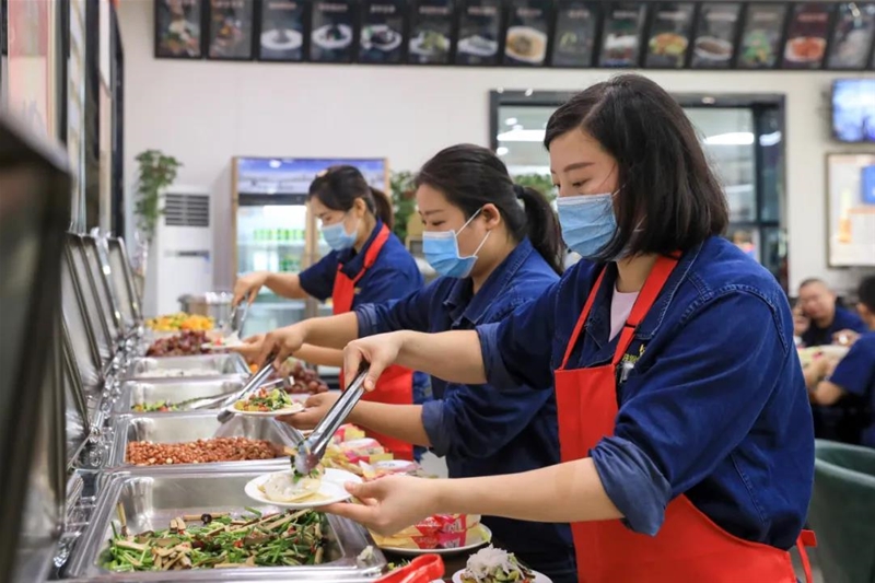 軋鋼廠工會抽調20名青年女工,在軋鋼職工餐廳分工協作,水果裝盤、月餅上桌,用細致周到的服務迎接前來就餐的職工,為讓不能前來餐廳就餐的職工共享美味,軋鋼廠工會還特別配置分裝飯盒,貼上祝福標語,將一份份美味的餃子、精致的果盤、月餅配餐到崗,讓全員都能感受到企業濃濃的節日氛圍。
