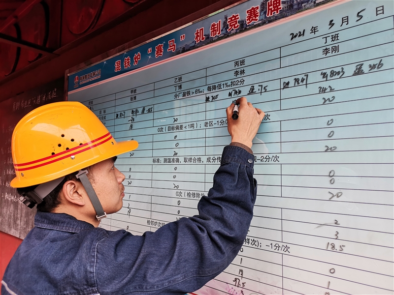 該作業(yè)區(qū)將改革創(chuàng)新作為生產第一動力,緊扣“提質增效、升級轉型、綠色智能”三大主題不松勁,組織管理人員及技術人員專題研究探討,建立創(chuàng)新機制及科學評價方法,為生產經營和崗位操作提供科學研判和技術理論支撐。按照“增鐵保鋼”“節(jié)鐵增鋼”“2+1”經濟型三種“經濟冶煉”模型,對混鐵爐日常操作進一步規(guī)范,進而達到生產穩(wěn)定、高效、成本最優(yōu)。同時將“廢鋼效益”模型作為廢鋼最佳配比提供重要依據,深挖生產過程中存在的隱形問題,并逐一擊破,建立全新管理體系,為企業(yè)提質增效。