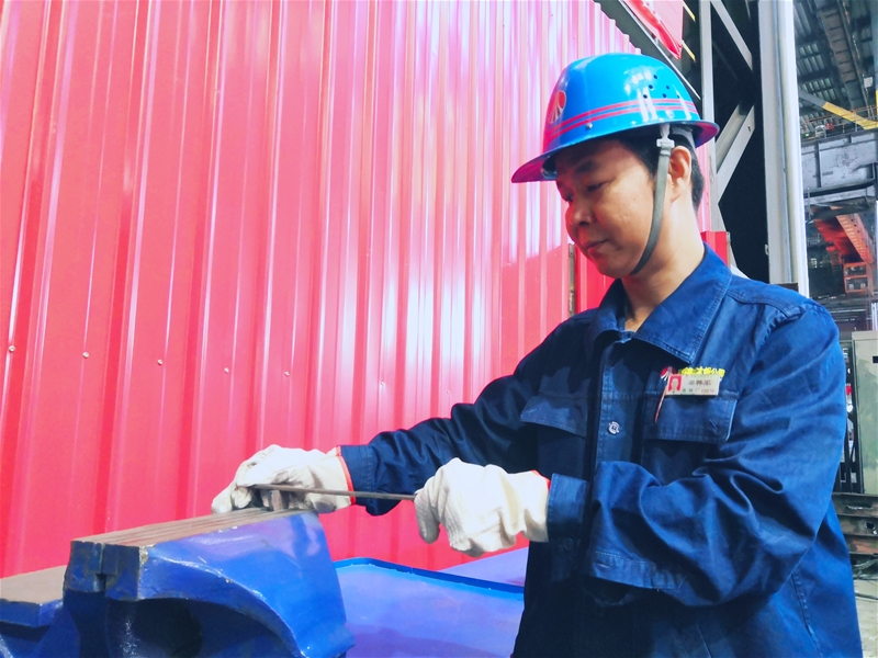 在炎熱的廠房里有這樣一個人,他被稱為給設(shè)備看病的醫(yī)生,他就是作業(yè)區(qū)點(diǎn)檢組組長——梁韓軍。