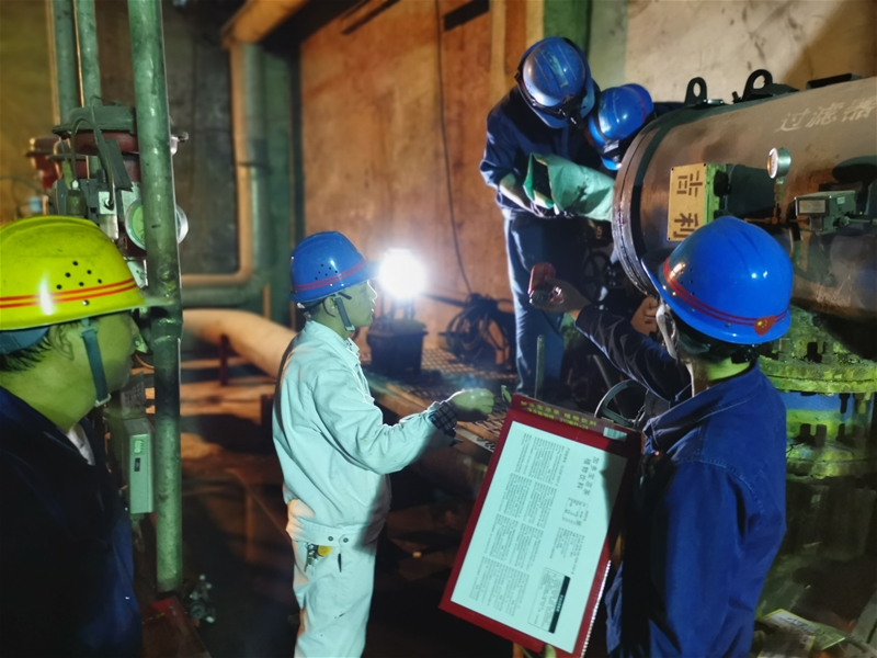 “今天的檢修只有兩個小時,大家的任務已經明確,停機后迅速行動,必須在規定時間內高質量完成檢修工作。”即將停機,連二作業長王小慶強調道。