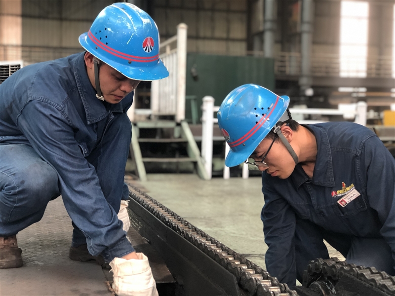熱送提升鏈在勾頭提鋼時,受鋼坯重力影響,勾頭和提升鏈扣形成一定夾角,導致勾頭兩邊鏈扣滾輪容易磨損。為解決這一問題,經(jīng)技術人員現(xiàn)場跟蹤測試,決定在提升鏈勾頭下方焊接厚度為16毫米的鋼板,同時制作一定尺寸的鋼板做壓板,確保每次提升鏈提鋼時,勾頭和鏈條在同一直線上,以減少滾輪和銷軸之間的磨損。改造后,不僅節(jié)約了誤機時間,延長提升了鏈輥輪更換周期,同時降低了人員勞動強度,年綜合創(chuàng)效7萬元。