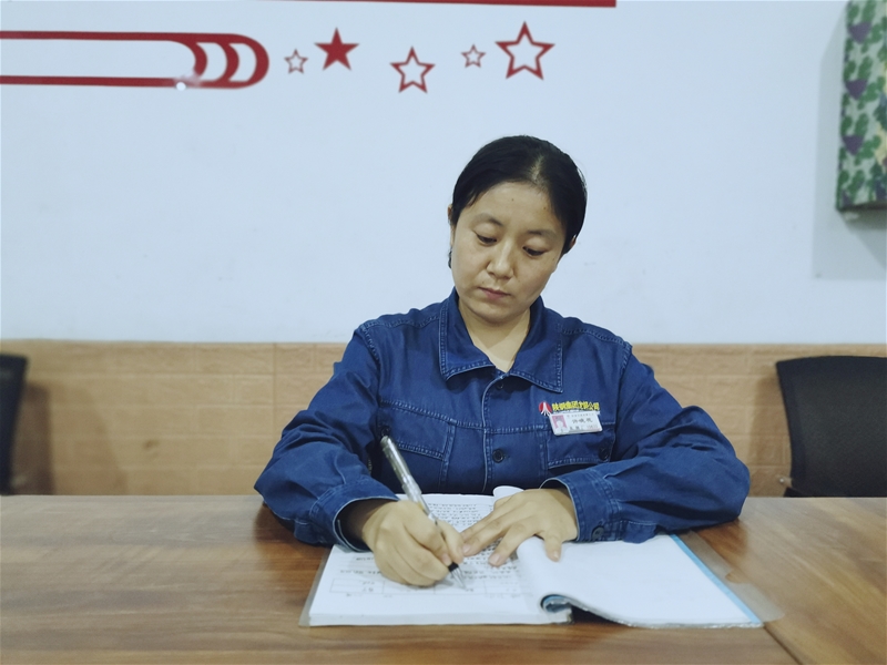 工作中,她還是個熱心腸。一次,班中安全員因家中有事請長假,為了確保班組建設工作有序開展,她主動請求完成班組安全臺賬,由于第一次接觸班組安全管理工作,不是很熟悉,她主動向別的優秀班組請教,從日常安全管理臺賬到安全知識每日分享、單點課編寫等,她都一絲不茍,高標準、嚴要求完成每項任務,得到領導和同事們的一致贊賞。她還主動承擔班組員工福利、勞護用品、防暑物資領取和發放工作,用實際行動溫暖了每個人。因此,“勤奮好學、熱情大方、細心謹慎”成為她工作的標簽,面對大家的贊賞,她說,“這沒什么,我只想用心用情干好每一件事。”