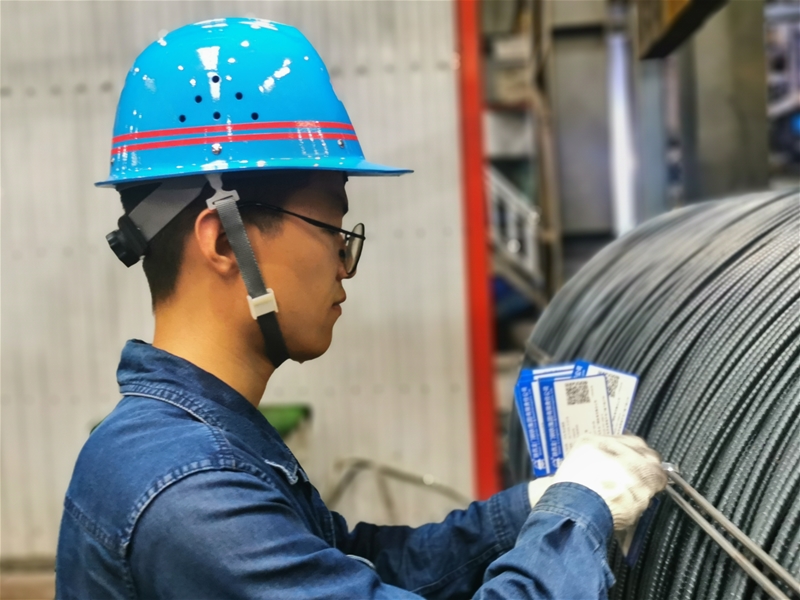 在40℃的高線成品區(qū),迎面撲來(lái)的“熱浪”對(duì)于標(biāo)牌工樊強(qiáng)早習(xí)以為常,他正穿梭于鋼卷之間,有條不紊地將二維碼標(biāo)識(shí)牌掛在鋼卷上,為鋼材出庫(kù)守好關(guān)卡,做好服務(wù)保障。