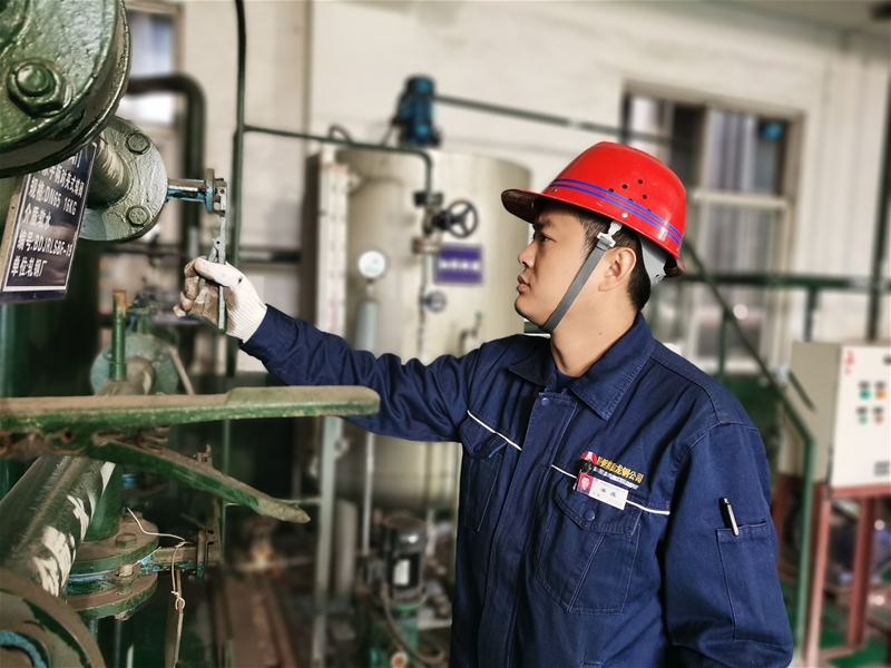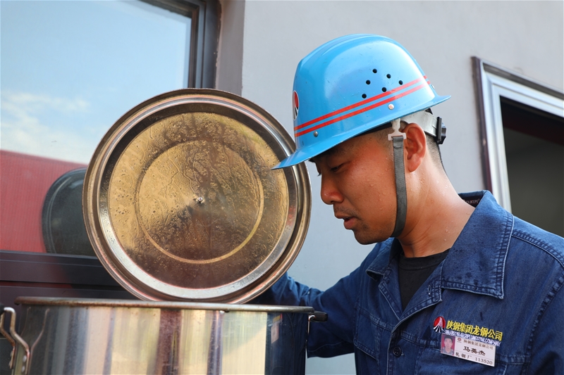 為保證生產(chǎn)順行,加熱爐工長(zhǎng)梁磊與高溫進(jìn)行搏斗,對(duì)軟水設(shè)備閥門進(jìn)行復(fù)檢。