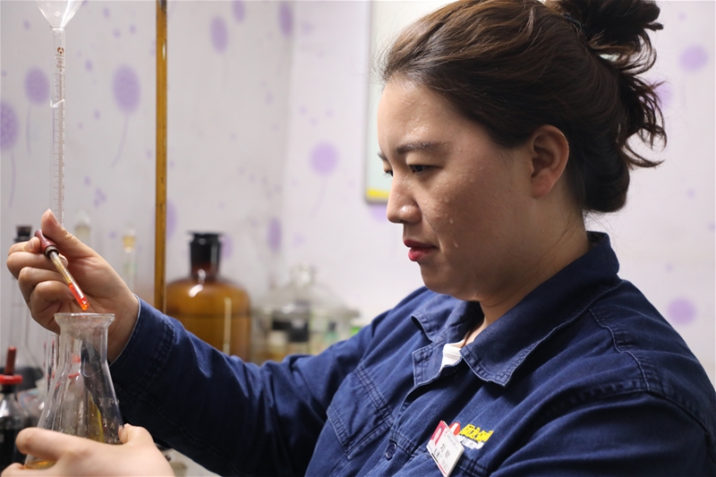 在運(yùn)行化驗(yàn)室,剛?cè)踊貋?lái)的化驗(yàn)工劉盼顧不上擦拭頭上的汗水,立即投入水質(zhì)化驗(yàn)中。“確保水質(zhì)達(dá)標(biāo),優(yōu)質(zhì)水質(zhì)上線使用,為鋼材性能提升提供有力保障。”是她履行崗位的諾言。