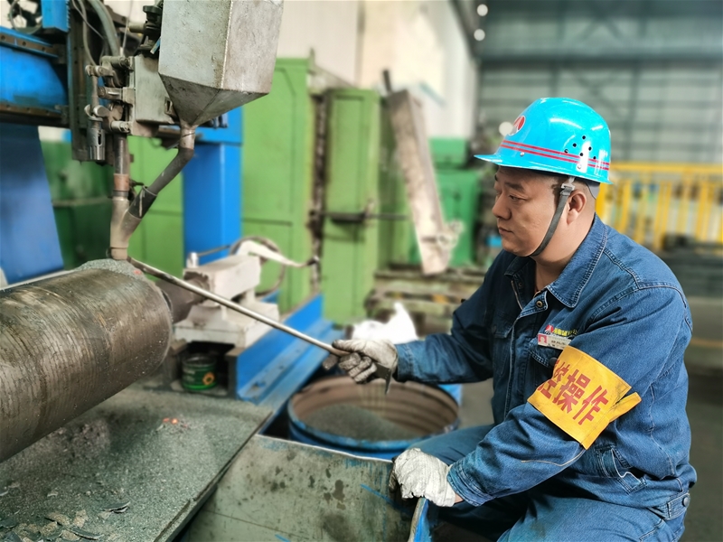 在板帶預(yù)裝工段,車工郝趙軍在堆焊機(jī)前,一邊加料,一邊對(duì)堆焊質(zhì)量進(jìn)行監(jiān)護(hù),汗水濕透了衣衫,但他依然堅(jiān)守初心和匠心,將簡(jiǎn)單的工作做到極致。