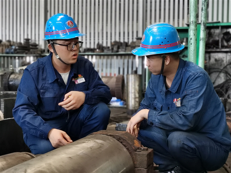因軋線定期檢修使鋼坯在加熱爐內停留時間較長,造成鋼坯兩頭彎曲,導致鋼坯出爐易碰撞到出爐輥道軸承座上發生卡鋼、傾斜,影響生產節奏。為解決這一難題,該單位技術人員主動作為,經現場實際測量,發現推鋼機每次拖鋼時,彎曲的鋼坯兩端最低點和鋼坯中間的最高點相差20公分,導致拖鋼碰到出爐輥道軸承底座發生卡鋼。為此,技術人員與維修人員協同配合,利用廢舊鋼板將推鋼機前端加高20公分,有效解決了鋼坯出爐卡鋼、傾斜的問題。此舉,大幅降低人員勞動強度,月綜合創效4萬元。