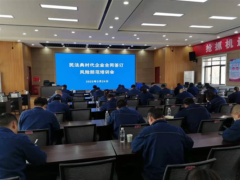 為深入學習貫徹習近平總書記法治思想,落實集團公司法治建設相關要求,全面開展普法宣傳教育活動,3月24日,公司舉行了民法典時代企業合同簽訂風險防范培訓會。公司黨委委員、總經理助理、副總會計師邢宏昌,副總經理姜劍鋒以及各單位合同管理員、風險防控員等參加。