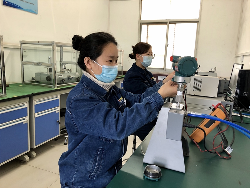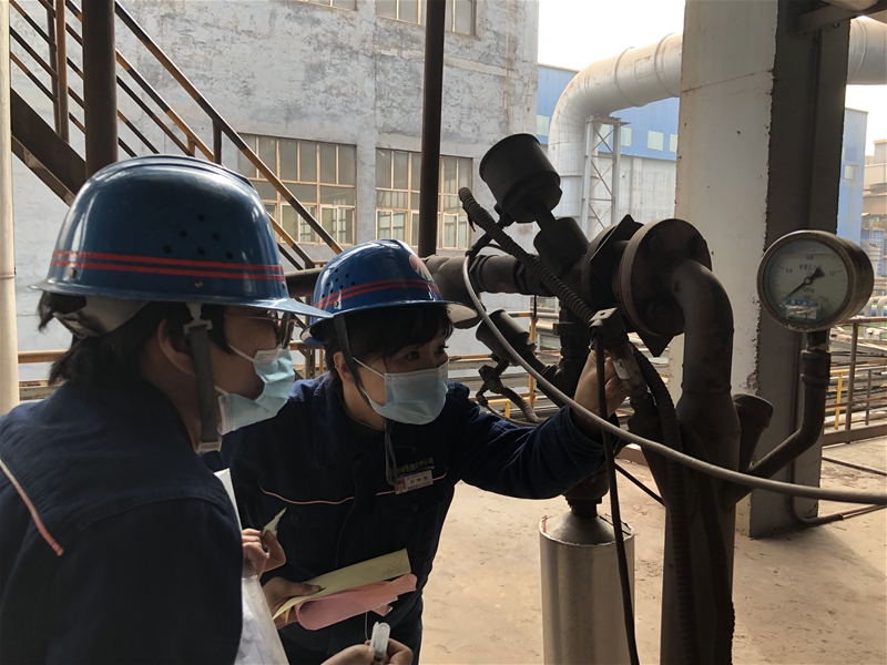 為確保生產正常運行,她們置身生產一線,利用便攜式檢測設備,對壓力、溫度、流量、電磁等測量儀器進行在線檢測。壓力設備采取相同壓力源多點位進行比對,計算誤差值是否在允許范圍內;溫度類設備先使用紅外測溫儀進行測試,再根據主控室顯示的數據進行比對,判定其是否合格;電能表則通過標準表與被檢表相連接,通過變比值計算出電流值,根據現場電壓值與標準器示值進行比對;在線流量積算儀通過與多功能信號儀連接,在線檢測輸出信號值是否在允許范圍內……她們瘦小的身影穿梭在縱橫交錯的設備與管道間,為一臺臺測量設備檢測、分析,與現場工作人員進行溝通,確認每一臺設備性能正常。