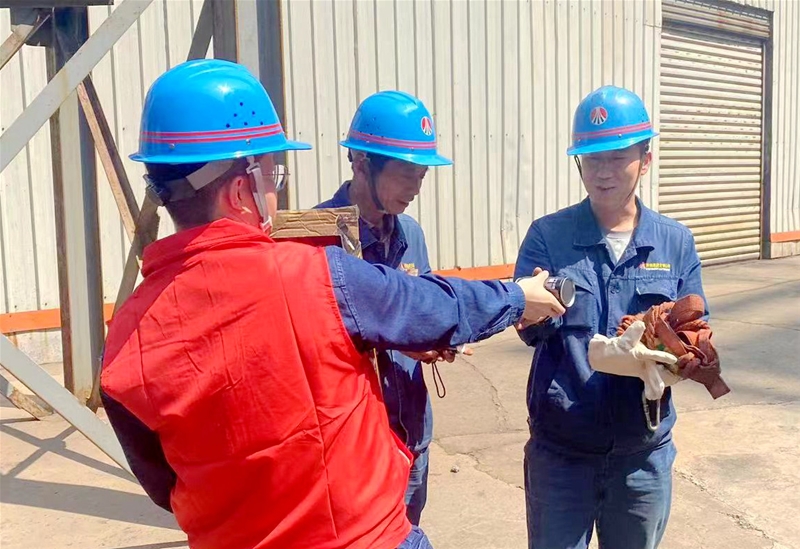 在檢修現(xiàn)場,有這樣一支紅色愛心服務(wù)隊,他們是由平均年齡35歲的青年志愿者組成。他們主動請纓,為檢修現(xiàn)場參檢人員夏檢送清涼,一起戰(zhàn)高溫、斗酷暑。他們抱著防暑降溫飲品,登上20多米高爐平臺上,在送清涼的同時,還時不時提醒參檢人員注意現(xiàn)場安全。“這么熱的天氣,大家干完活休息一下,我們這里為大家準(zhǔn)備了補(bǔ)充能量的飲品和飲用水。”青年志愿者王丹丹將一瓶瓶降溫飲品遞到參檢人員手里。“大家作業(yè)前把藿香正氣水喝上,以防中暑。”“上下臺階一定要注意腳下……”從這些溫馨的提示話語中,盡顯滿滿的關(guān)愛之情。