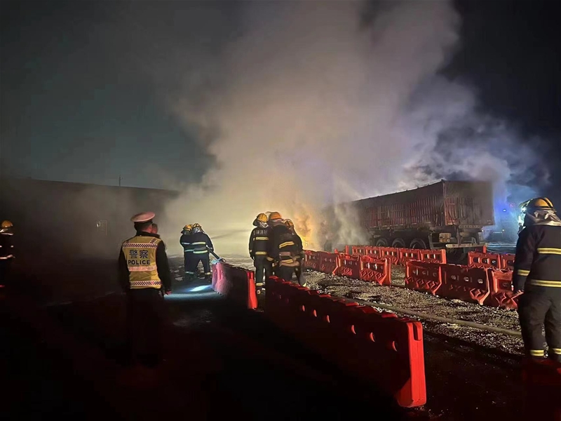 火情就是命令。公司安保大隊(duì)消防中隊(duì)立即啟動(dòng)《社會(huì)外援緊急救援方案》,值班干部帶隊(duì),組織4名消防隊(duì)員、4名交管隊(duì)員及消防車輛1輛于晚7:40趕到火災(zāi)現(xiàn)場(chǎng),在接受現(xiàn)場(chǎng)韓城市消防救援大隊(duì)指揮任務(wù)后,消防員拿起滅火工具,冒著高溫和刺鼻的氣味撲向火源,展開滅火行動(dòng)。由于夜間光線不足,再加上大卡車車頭整個(gè)起火,火勢(shì)兇猛、濃煙滾滾,為保證安全,同時(shí)安排4名交管隊(duì)員現(xiàn)場(chǎng)實(shí)行警戒,疏導(dǎo)車輛交通。最后在韓城市消防救援大隊(duì)、龍鋼公司安保大隊(duì)消防隊(duì)、龍門煤化工消防隊(duì)三方同心合力下,半小時(shí)后火災(zāi)被成功撲滅。