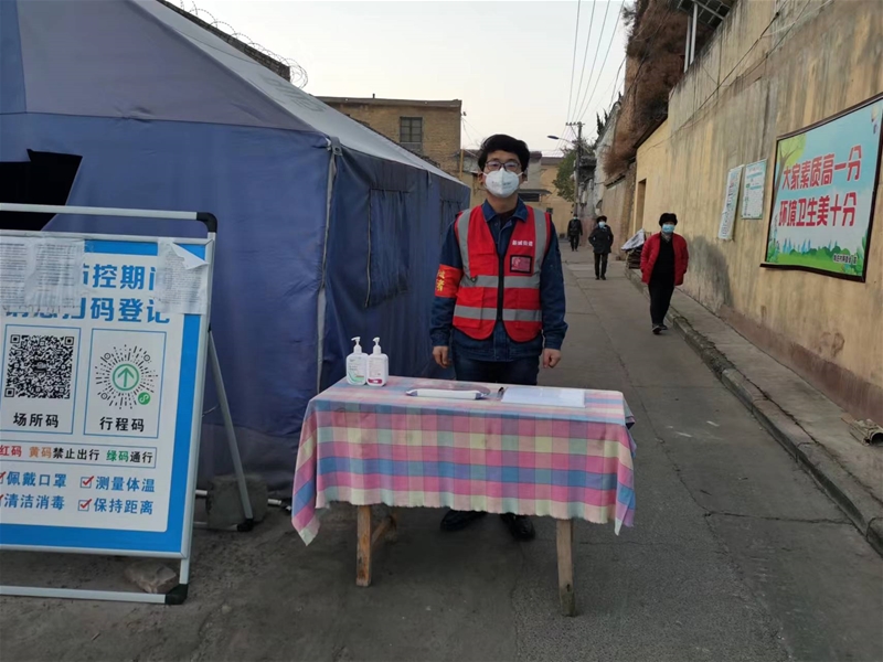 圖五:薛江輝:我很榮幸成為社區(qū)防疫志愿者。按照社區(qū)工作安排,我參與核酸檢測及信息錄入工作,并在小區(qū)核酸檢測點,不厭其煩地一遍遍提醒群眾戴好口罩、保持一米線距離,全力筑牢疫情防控屏障。