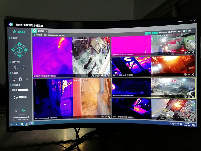 為確保鋼包安全運行,該單位引進了紅外熱成像檢測與分析系統(tǒng),并以此為基礎,開發(fā)、完善了龍鋼公司鋼包安全可視化管控平臺。該平臺采用波形圖形式直觀展現(xiàn)鋼包使用過程中各部位的溫度、內(nèi)襯變化過程,預測鋼包壽命,實現(xiàn)在線鋼包的實時檢測和監(jiān)控,既能保證鋼包的安全運轉(zhuǎn),又能做到異常情況提前預警,以便及時排除隱患。平臺包括現(xiàn)場待拆、砌包、烘烤、備用、在線等狀態(tài)鋼包,方便鋼包科學調(diào)度。對各時間段鋼包使用情況都進行了儲存,形成鋼包使用過程中溫度變化的大數(shù)據(jù)庫。