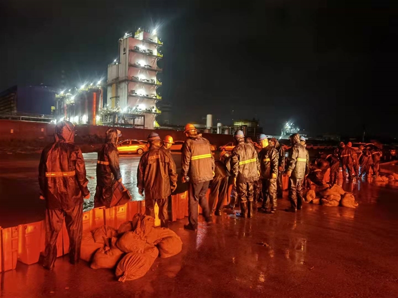 圖四:由于多天的連續(xù)強(qiáng)降雨,導(dǎo)致公司5#雨排外的雨水蓄水池水面持續(xù)上升,存在雨水倒灌廠區(qū)的風(fēng)險(xiǎn),防汛辦與環(huán)保辦根據(jù)雨勢(shì)情況對(duì)其進(jìn)行全天候不間斷檢查。