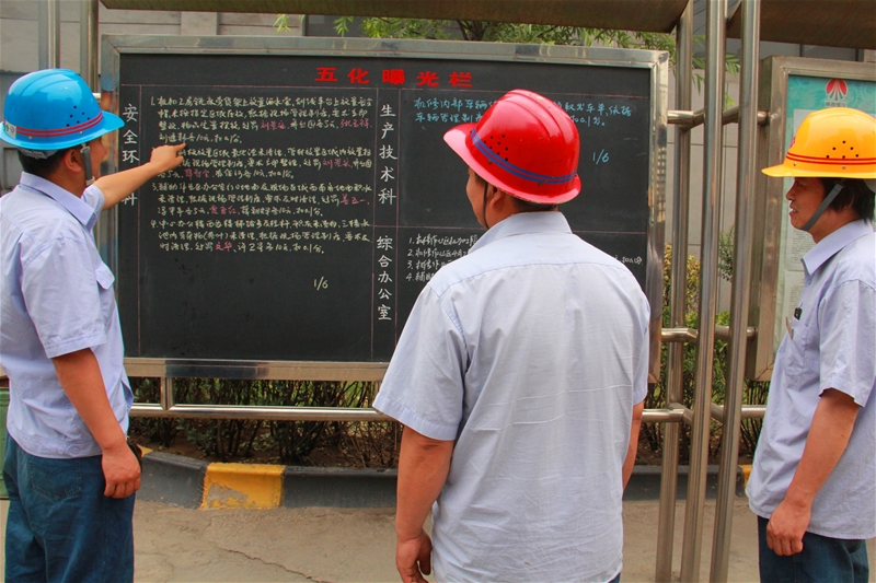 為了更醒目的展現對違章事實、所在單位、所屬專業和管理人員的處罰,從視覺上提高各級人員對“五化”曝光問題的關注度,有效杜絕同類問題的重復出現。近期,設備管理中心對五化曝光欄進行了劃線、標識,分區域、分專業用粉筆的不同顏色對問題進行曝光,突出違章人員姓名和違章考核結果,充分運用色彩管理將管理者的“面子”、“票子”曝光。