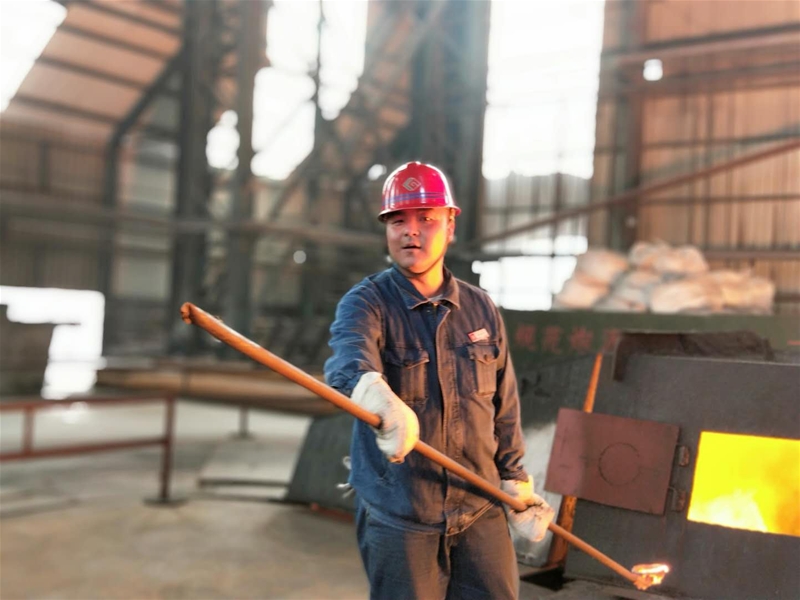 第一站來到了煉鐵廠5號高爐,在爐前班長簡單介紹完拍攝地點和安全注意事項后,我們正式進入拍攝現場。首先直入眼簾的是5號高爐副爐長薛永輝和爐前工人一起出鐵的火熱場面。爐前班長王拓手持鋼釬在查看出鐵口,奔涌的鐵流猶如壺口瀑布般傾瀉而出,炙熱滾燙的鐵水烤得臉膛皮膚就像蒸桑拿一樣。只見薛永輝瞅準時機,熟練地拿起取樣勺快速取出鐵樣,穩穩地放進盛樣盤中。“剛來爐前的新工根本熬不住這出鐵的高溫,經常是一次取樣下來衣服就像雨淋一樣,喝幾大杯水,全排成汗了,這僅僅還只是不到三伏!我們多年來早就習慣了這種環境,現在還舍不得離開高爐呢”旁邊一位老爐前工很爽朗地講著他的工作。看得出這些冶煉的漢子們早已經把這種火熱的工作當做了生活中不可分割的一部分,他們就是高爐的守護神。看到這些絕美的畫面,拿著“長槍短炮”的攝影愛好者們快速按下快門,用一個個鏡頭記錄著爐前工最美的瞬間。