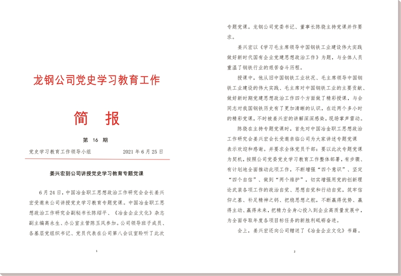龍鋼公司《黨史學習教育工作簡報》 第16期